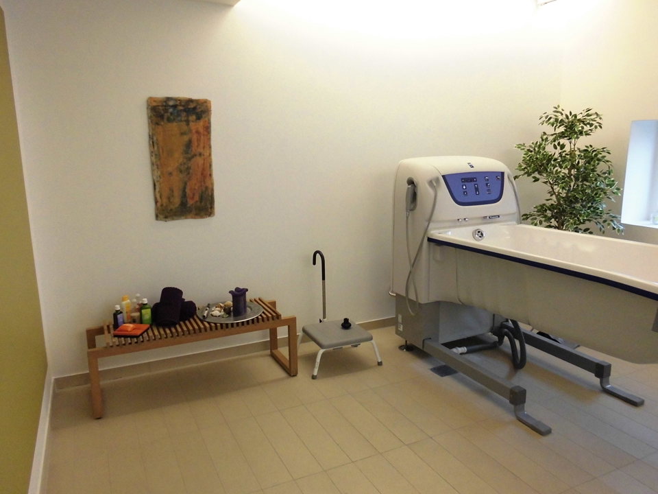 I spabadet på Hospice Sydfyn kan man opleve velvære og afslapning. Oplevelsen kan efter ønske suppleres med lyden af stille musik og eventuelle dufte i vandet.